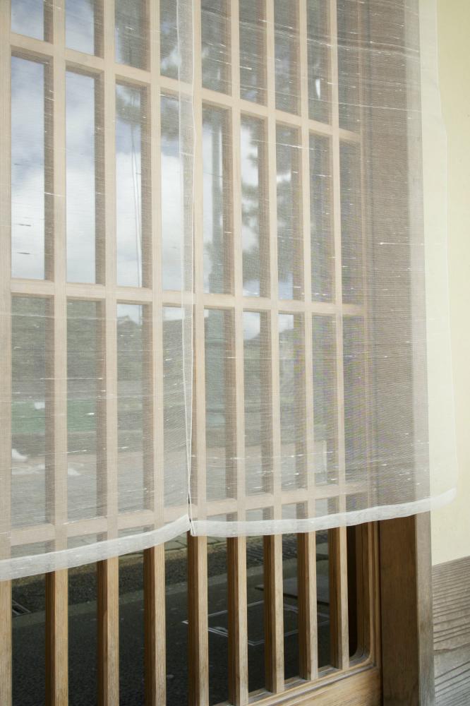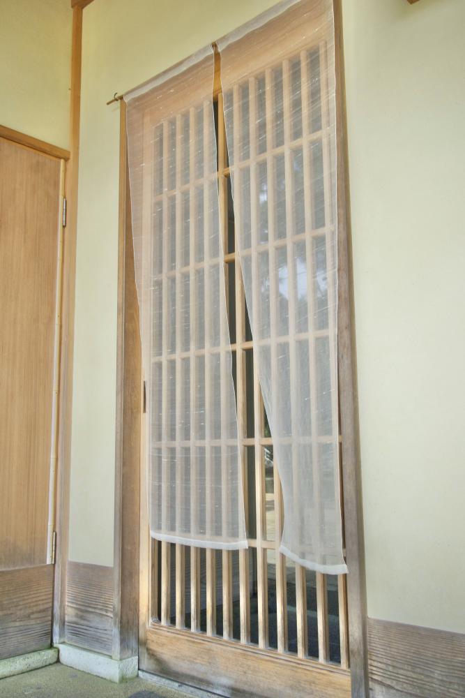 お盆の季節、ご先祖様を迎えるための暖簾として、透け感の美しいしけ絹を使用。