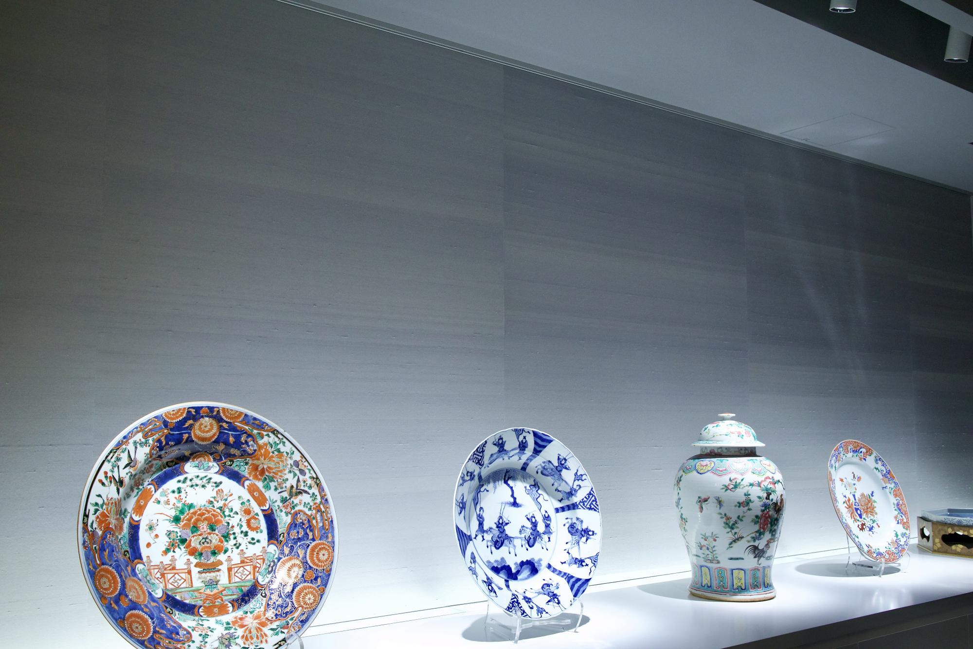 しけ絹特有の柔らかな光散乱が、ガラスケースやスポットライトの“強い影”を軽減し、中国古美術の細密な絵付けの陰影を穏やかに浮かび上がらせます。